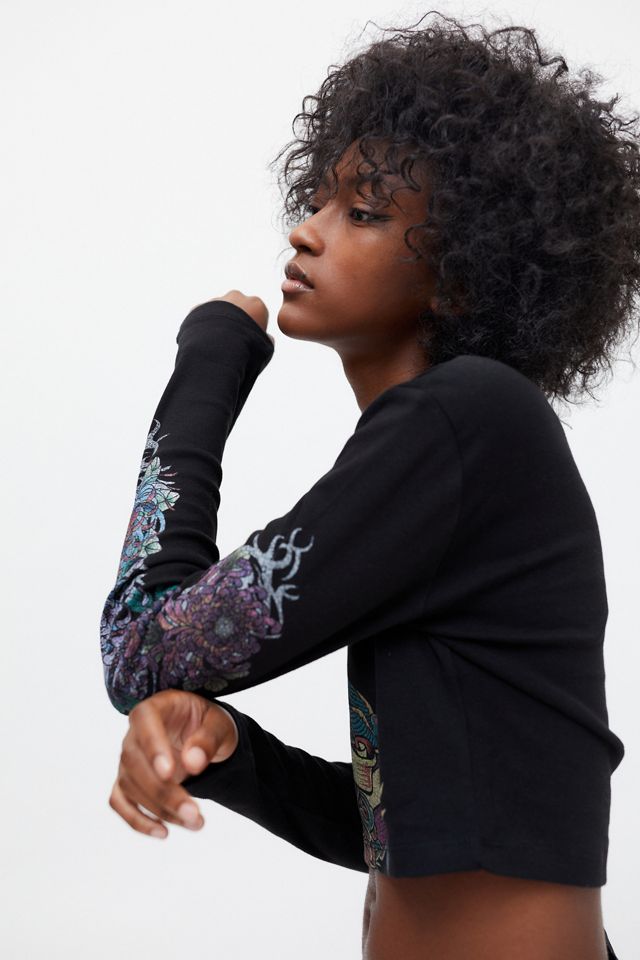 Tattoo Eyelet Cropped Long Sleeve Tee Urban Outfitters