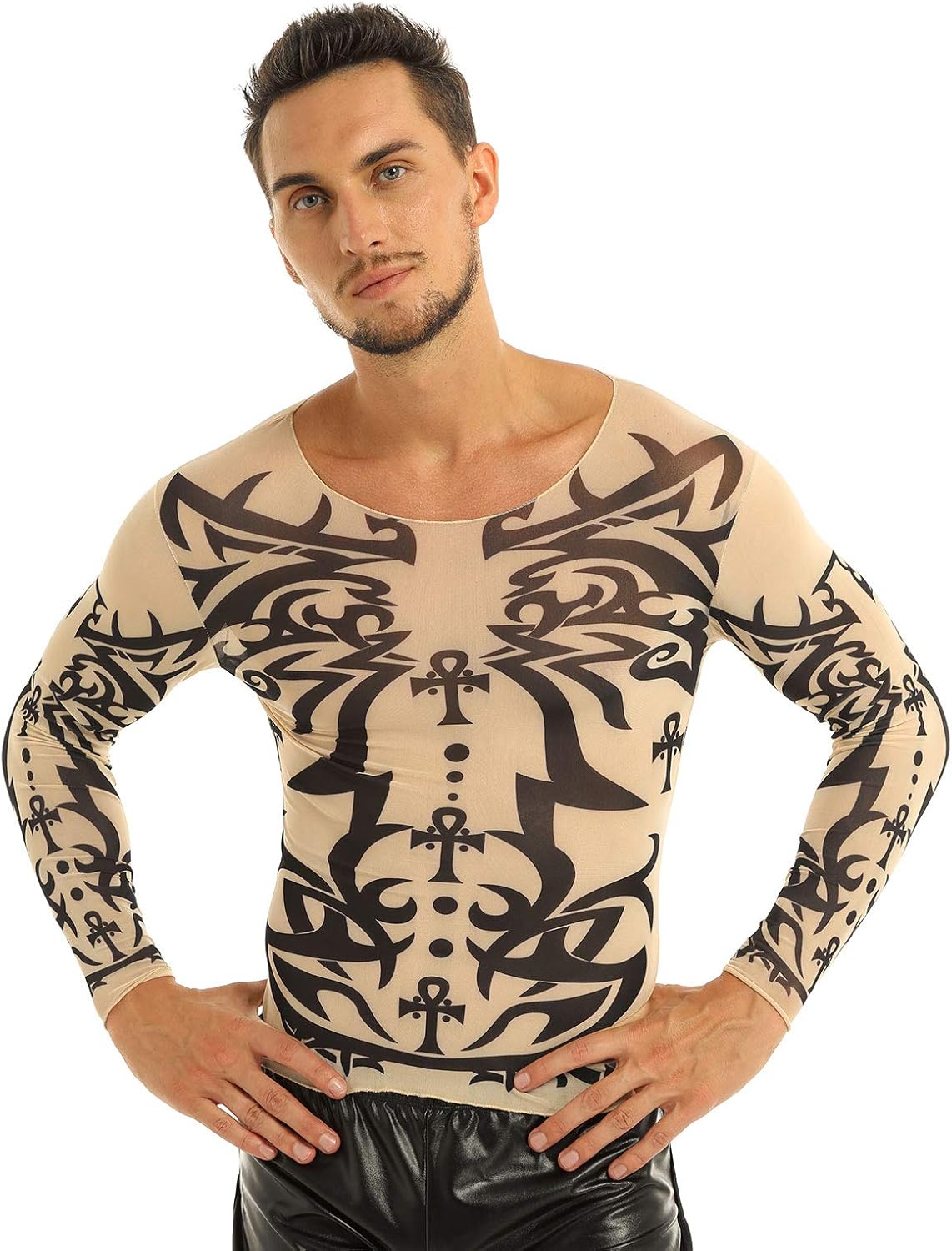 Men Mens Tattoo Shirt Long Sleeve Shirt With Tattoo Stretch T Shirt Tops Costume Ebay